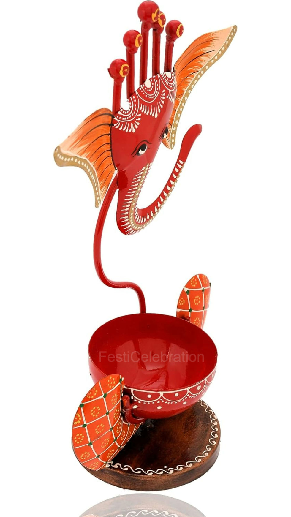 Handcrafted Metal Ganesha T-light Holder – Decorative Spiritual Home Accent