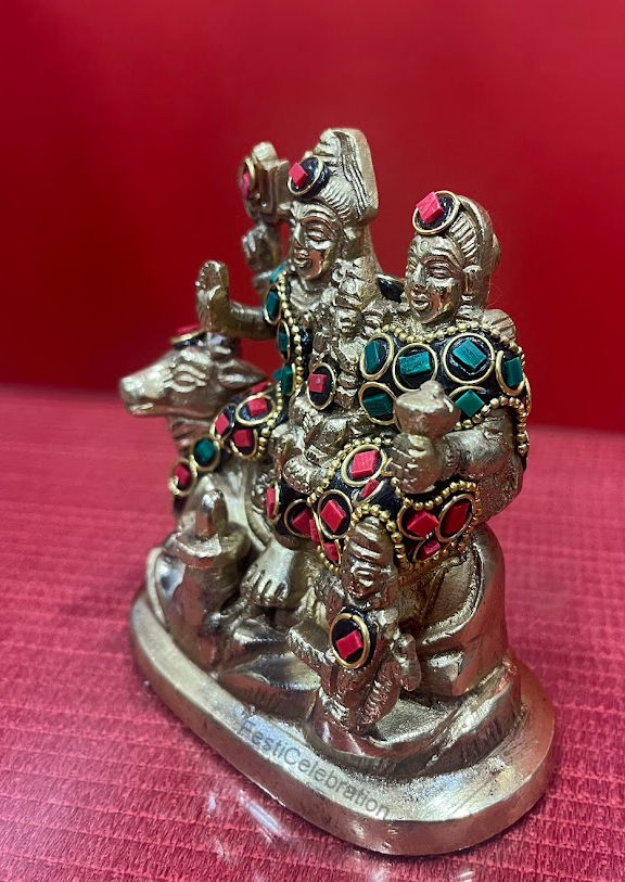 Divine Brass Shiv Parvati Parivar Idol with Gemstone Work – Mahadev Family Murti